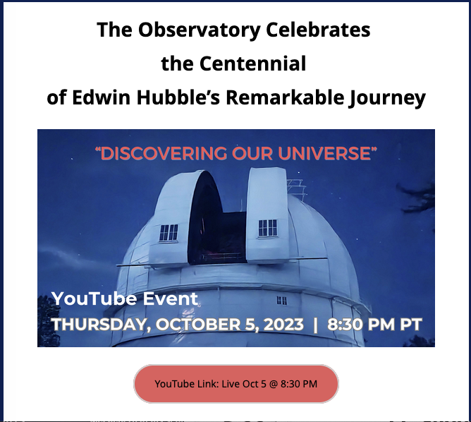 The Observatory Celebrates the Centennial of Edwin Hubble’s Remarkable Journey