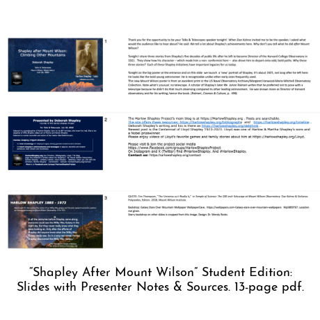 The quotes on Deborah’s final slide “Legacy” led off with astronomer Bart Bok comparing Shapley to Copernicus.