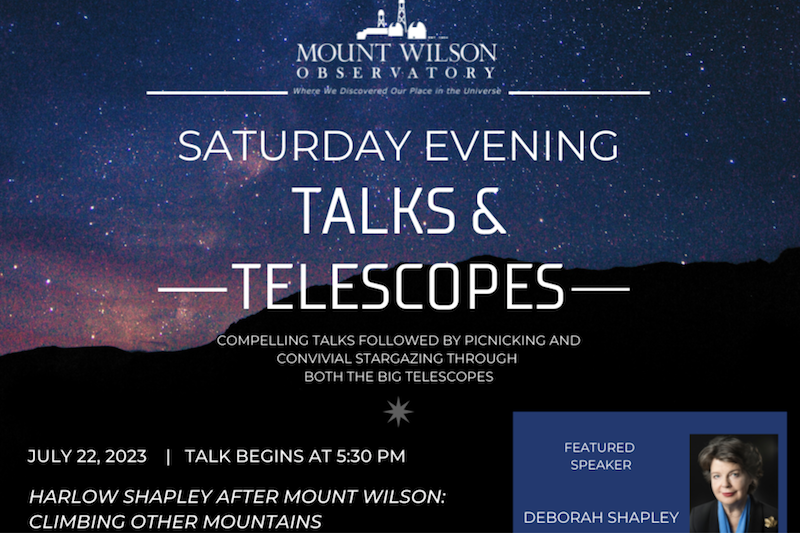 Deborah Shapley presented “Shapley After Mount Wilson” to a full auditorium near the 60-inch Hooker telescope where her grandfather made his great discoveries. As night fell ticket-holders lined up to enter and view real stars through the 60-inch and 100-inch telescopes. The evening event was part of the Talks & Telescopes monthly series.