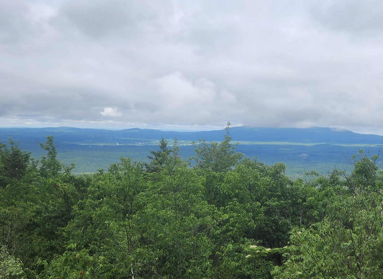 Trees and overcast sky near Temple Mountain, Hillsborough County, N.H. Credit: Galant, June 2023.